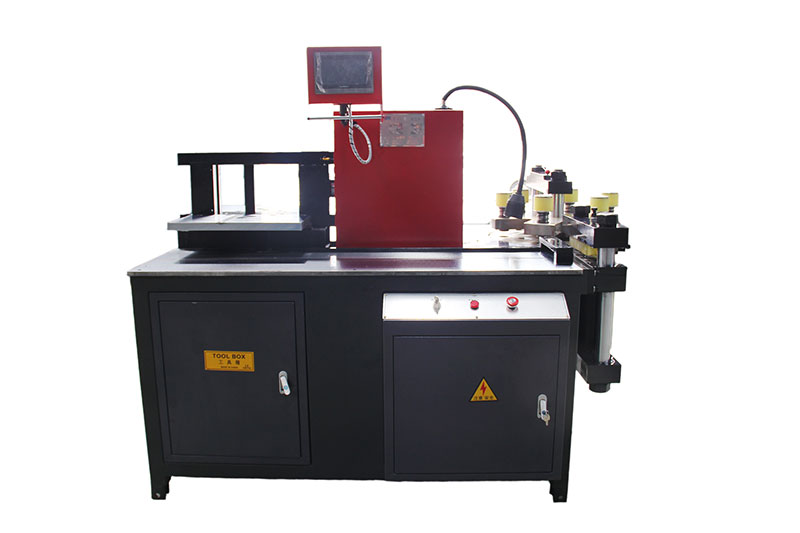 本機采用日本松下PLC控制,主要功能為加工不同規格的銅、鋁母線。工作時,只需要選用相應的加工工位,就能方便、快捷的對銅、鋁排進行剪切、沖孔,折平彎、立彎、壓花、壓平、等各種銅排的加工。